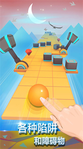 游戏采用单指触控的极简操作模式,通过左右滑动实现精准变向。动态地板上随机出现的移动机关包括:
