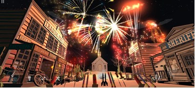 2、第一视角漫游系统可探索虚拟城镇,触发隐藏烟花彩蛋