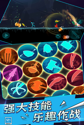 1、创新战术体系:每个火柴人角色配备专属觉醒技,在血量低于30%时可触发特殊战斗形态,配合场景机关实现绝地反击。