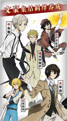 1、角色培育体系:每位文豪拥有独立成长树,通过异能觉醒、专属装备、羁绊故事等多维度培养,可解锁特殊战斗动画与隐藏剧情。