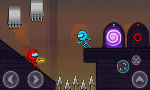 游戏创新采用双角色即时切换系统,红色角色掌控熔岩之力,蓝色角色驾驭寒冰能量。玩家需根据场景机关特性,灵活切换角色激活对应元素装置。特色道具系统包含伸缩钩爪、重力反转器等十余种特殊装备,配合环境中的移动平台与动态机关,构建出千变万化的解谜路径。