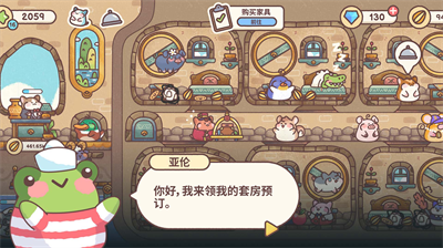 2、个性化装扮系统:为河马住客设计潜水镜造型,帮刺猬客人定制专属按摩套餐