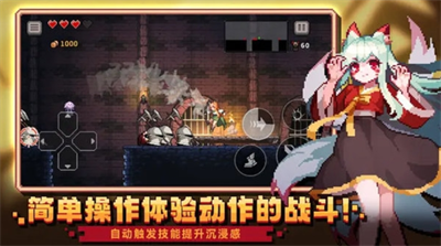1.复古视觉盛宴:精心打磨的像素美术呈现精致场景细节,从角色服饰纹理到地牢光影效果都经过细致处理,搭配动态粒子特效营造沉浸式冒险氛围。
