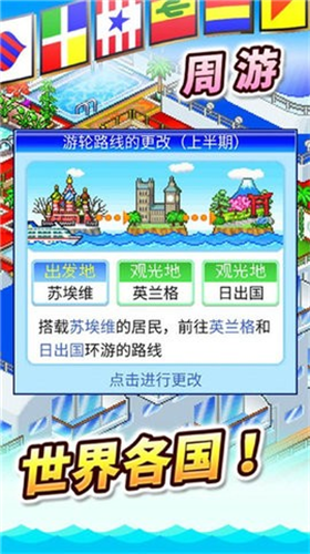 《豪华游轮物语》是一款以航海经营为主题的像素风模拟游戏,玩家将化身游轮管理者,通过精心规划船舱设施与航线运营,打造闻名世界的梦幻海上宫殿。游戏采用经典开罗式像素画风,结合轻松放置玩法,让玩家在指尖感受经营航海的独特魅力。