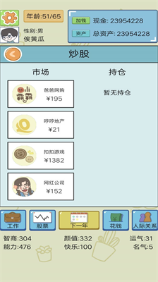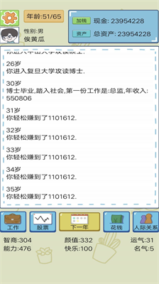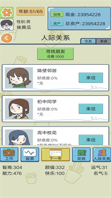 首富人生模拟器是一款沉浸式商业经营手游,游戏通过真实细腻的财富积累过程,让玩家体验从白手起家到商业巨擘的完整蜕变。在充满机遇的虚拟世界中,玩家需运用商业智慧拓展产业版图,通过精准投资、人才培养和战略决策,逐步打造专属的商业帝国。