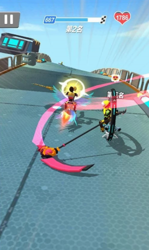 1、独创三指操控系统实现精准转向与武器发射的协同操作,赛道中随机刷新的加速装置与防御护盾大幅提升战术深度