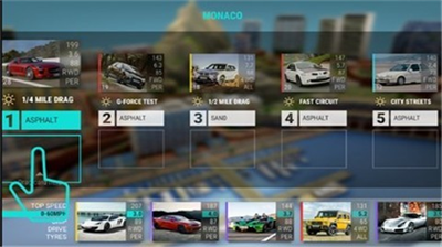 在职业模式中,玩家将经历从地下车手到世界冠军的完整进阶之路。每个赛季包含50+主题赛事,既有城市街道的午夜狂飙,也有专业赛道的计时圈速挑战。特别设计的漂移积分赛与直线加速赛,让不同驾驶风格的玩家都能找到专属舞台。