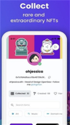 1、创新性融合数字艺术品交易与加密货币管理,支持ETH、BTC等主流资产实时行情追踪