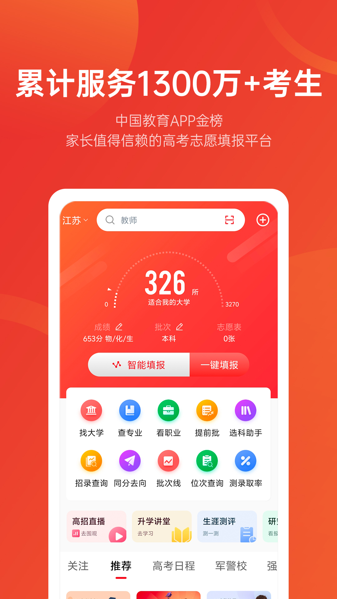 优志愿APP作为高考志愿填报领域的专业工具,依托实时更新的招录数据库与智能分析系统,为考生提供精准的志愿填报解决方案。通过整合全国30个省份的报考规则与院校数据,结合个性化测评功能,帮助考生在人生重要抉择中把握主动权。