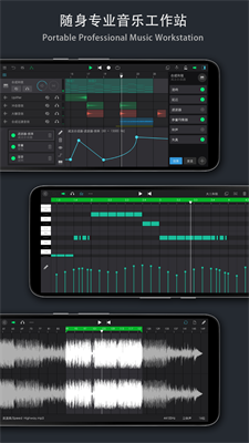 3、多轨编辑界面采用可视化波形显示,支持MIDI键盘蓝牙直连与触控量化功能