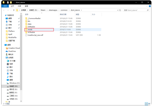 4、在打开的文件夹体系中,标有mods字样的目录即为所有订阅内容的集中存储区。