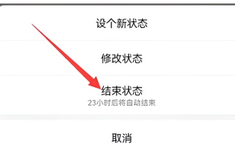 在弹出的功能选项中,选择带有红色字体的"结束状态"按钮。系统会立即清除当前设置的所有状态信息,同时在个人主页的状态显示区域将恢复默认空白状态。