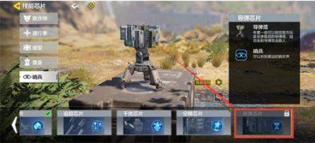 3、在战术芯片库中,需重点查看哨兵系装备组。向下滑动至【哨兵】芯片专区,通过装备缩略图可快速识别导弹芯片的独特标识。若该道具处于可获取状态,系统会在详情面板明确标注解锁条件,通常包括赛季任务进度、军备箱抽取或特定活动兑换等多元获取方式。
