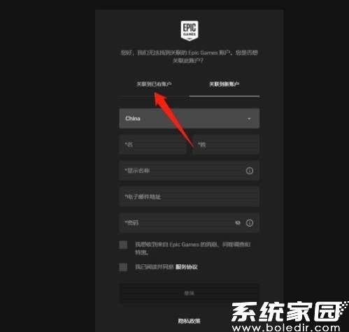返回Epic客户端界面,选择关联已有账号功能项。这里需要输入Epic账户的注册凭证,建议使用与Steam账号不同的登录密码以增强安全性。