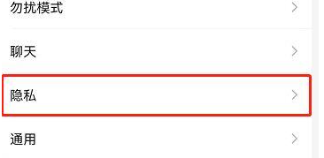 2、滑动设置菜单至中部位置,选择带有盾牌图标的"隐私"功能模块,该区域集中管理账户安全相关配置