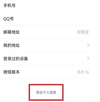 4、页面顶部展示当前账户的基本资料概要,向下滑动至操作区域,点击醒目的蓝色"导出个人信息"功能按钮