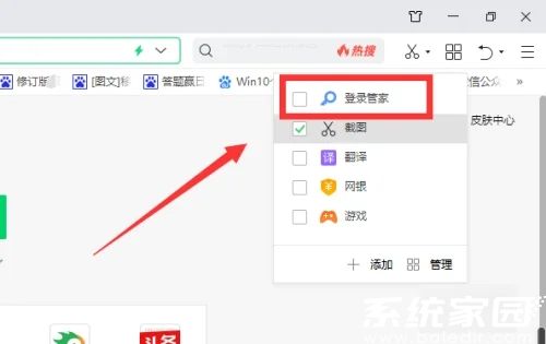 2、在下拉菜单中定位到带有钥匙图标的登录管家模块,该功能模块专门用于管理各类网站的账户凭证,点击后即可进入密码管理主界面。