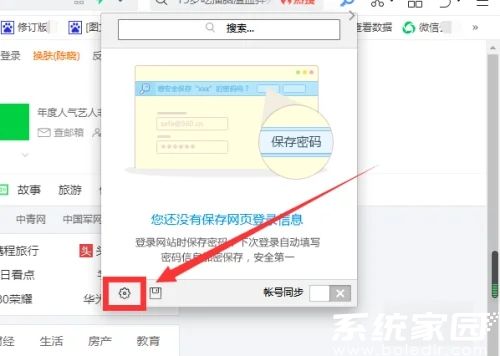 4、在展开的附加功能面板中,选择带有齿轮标识的设置选项,这里可进行密码同步、自动填充等个性化配置,确保账户信息的安全性与使用便捷性。