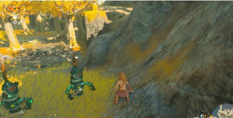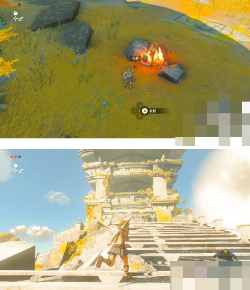 在中央篝火处可进行食材加工,将采集到的天空蘑菇、金苹果与新鲜禽肉组合炙烤,制成恢复效果提升30%的混合料理。补充体力后需横渡浅水潭,注意观察水面波纹可判断安全路径,最终抵达封印着关键剧情的时之神殿正门。