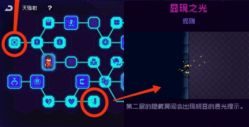 2、成功激活天赋后,需配合「显现之光」道具使用方能生效。当角色进入第二层关卡时,注意观察场景中闪烁的琥珀色光点,这些动态粒子特效会以环绕形态标记隐藏入口位置。需要特别注意的是该效果仅在标准模式第二层生效,且每日有触发次数限制。