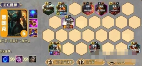 核心成员包含普朗克、亚托克斯(可替换内瑟斯)、尼菈、诺提勒斯、俄洛伊、格雷福斯、厄运小姐、嘉文四世,后期可选用崔斯特或沙皇强化阵容上限。该配置通过精准的羁绊联动实现攻防平衡,确保中期过渡平滑且后期具备高强度爆发能力。