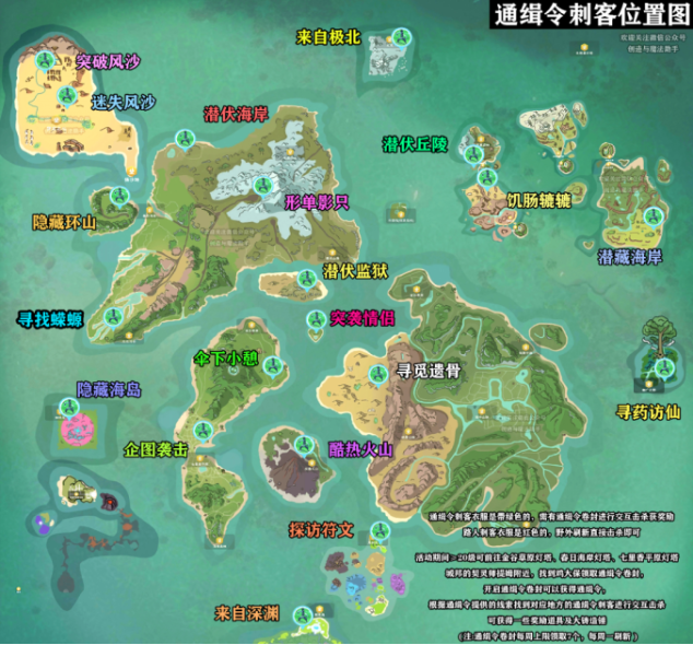 1. 游戏地图中通缉令刺客主要聚集于三大核心区域:金谷草原灯塔周边、春日海岸瞭望塔附近、七里香平原灯塔辐射带。建议20级以上玩家通过城邦契灵师提姆处接取任务,在鸡大保NPC处领取通缉令卷封开启追捕行动。