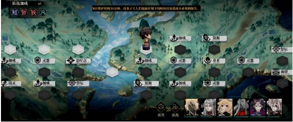 行进路线优先选择带有增益效果与商肆节点的路径,通过快速提升财/斩属性等级建立优势。首层BOSS战前需确保财属性达到二级,否则建议补充角色强化输出。