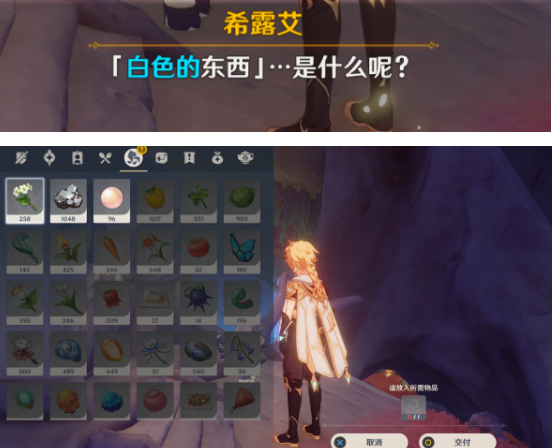 进入第二阶段时,白色物品的选择范围较广。推荐使用禽肉、面粉等烹饪材料,或是蒙德地区特有的塞西莉亚花。需要注意的是,提交物品时需确保背包内有足够数量,避免因材料不足导致任务中断。