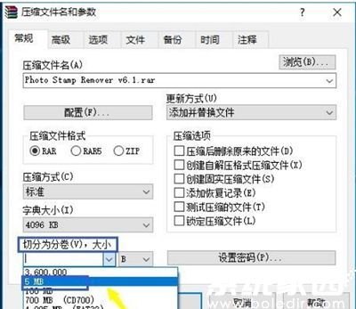 2,进入参数配置界面后,定位至"分卷大小"设置区域。此处下拉菜单提供多种预设容量选项,用户可根据传输媒介的容量限制灵活选择。